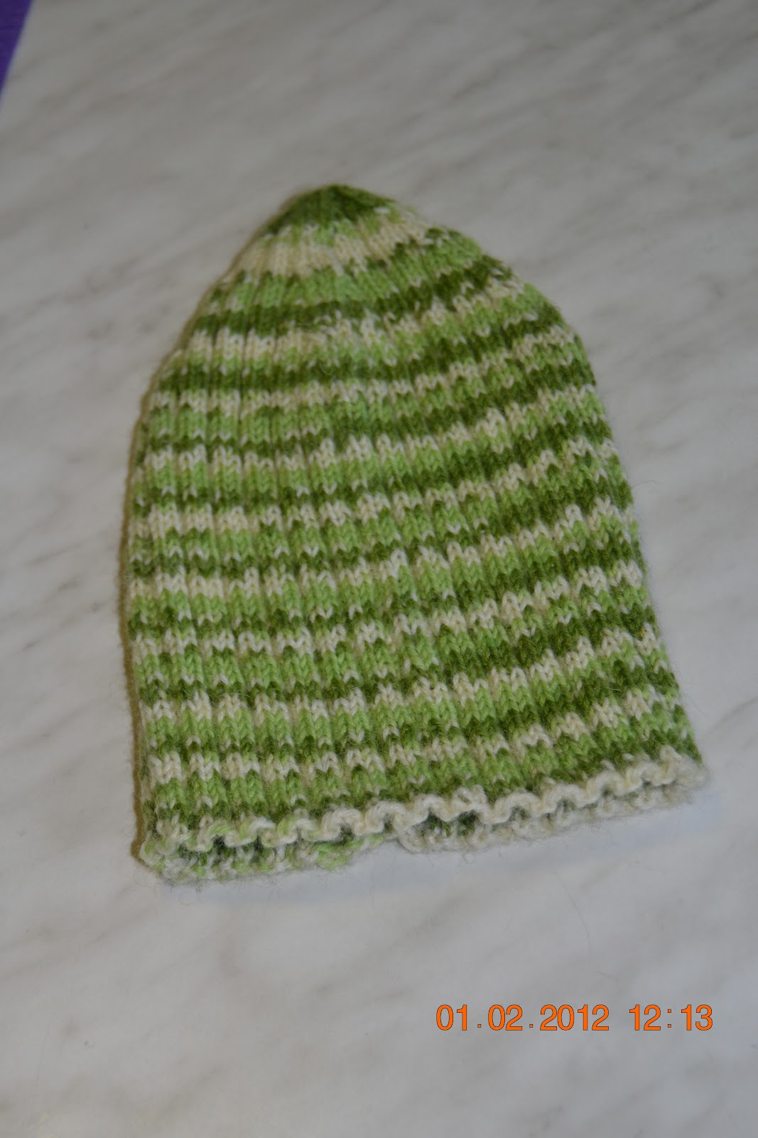 ensimmäisellä sileällä krs neulo 1 puikon 7 ja 8s oikein yhteen)Jatka työtä kunnes pituus on